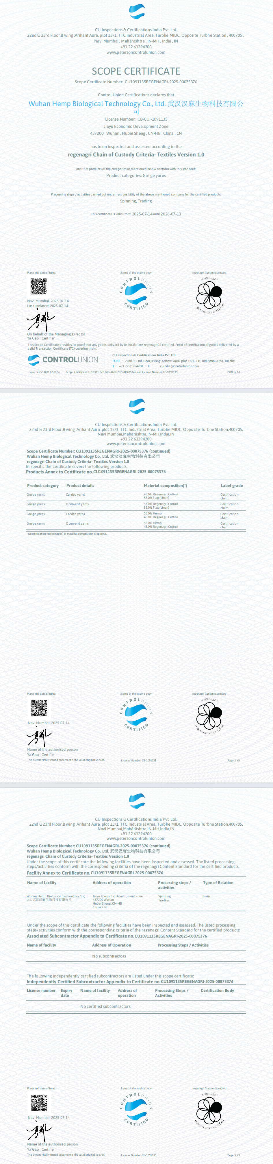 武汉汉麻生物科技有限公司目前已认证的体系——再生家业认证,是可持续实践的认可,更是进入绿色市场、提升长期竞争力的关键工具。